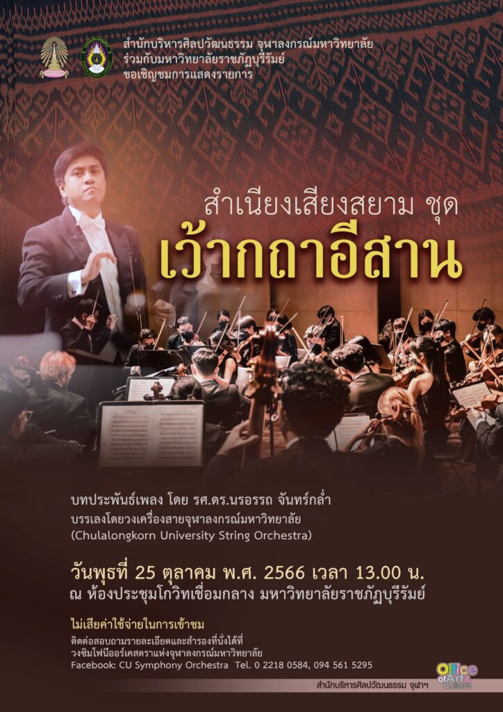 บทประพันธ์โดย รศ.ดร.นรอรรถ จันทร์กล่ำ บรรเลงโดยวงเครื่องสายจุฬาฯ (CU String Orchestra)