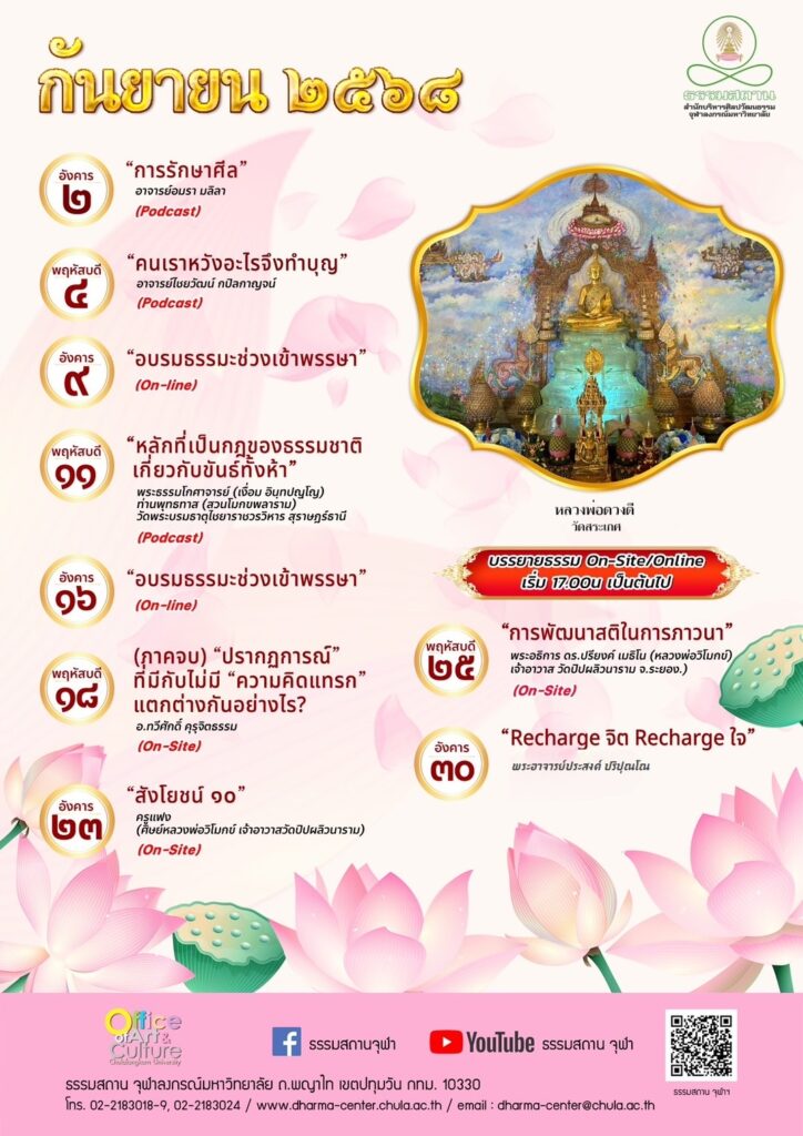 ขอเชิญ นิสิตนักศึกษา บุคคลทั่วไปผู้มีความสนใจฟังบรรยายธรรมเดือนกันยายน