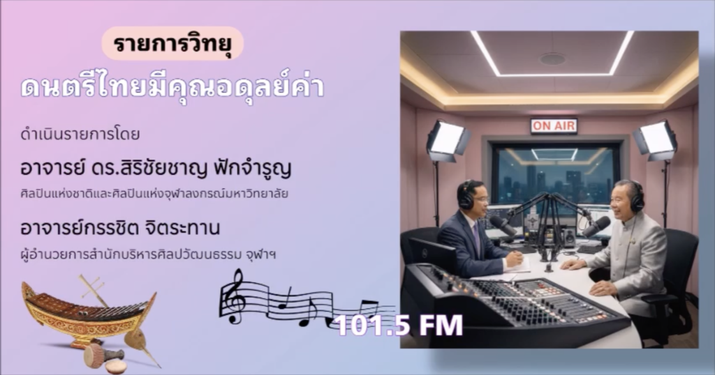 เวลา 8.30 – 9.00 น. ทาง FM 101.5 สถานีวิทยุจุฬาฯ