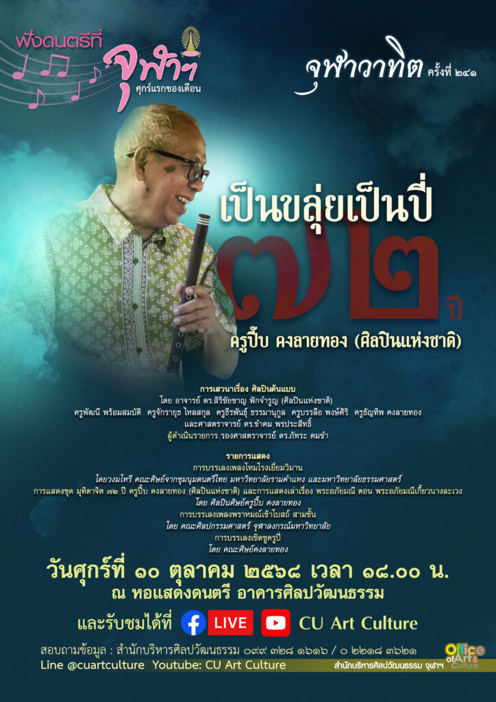 Office of Art and Culture would like to announce that the “Music at Chula” performance scheduled for November 7, 2025 has been postponed indefinitely.