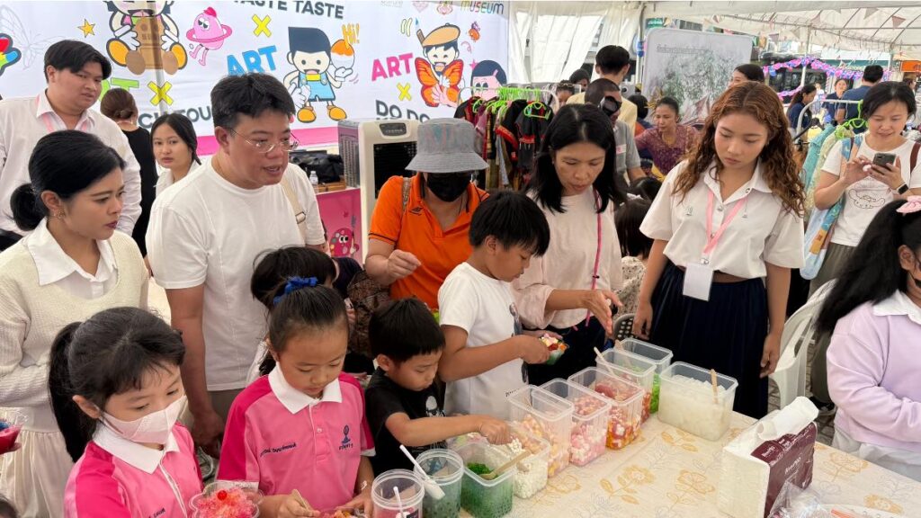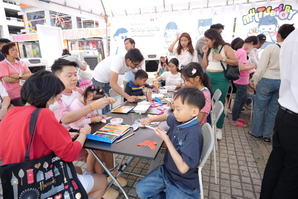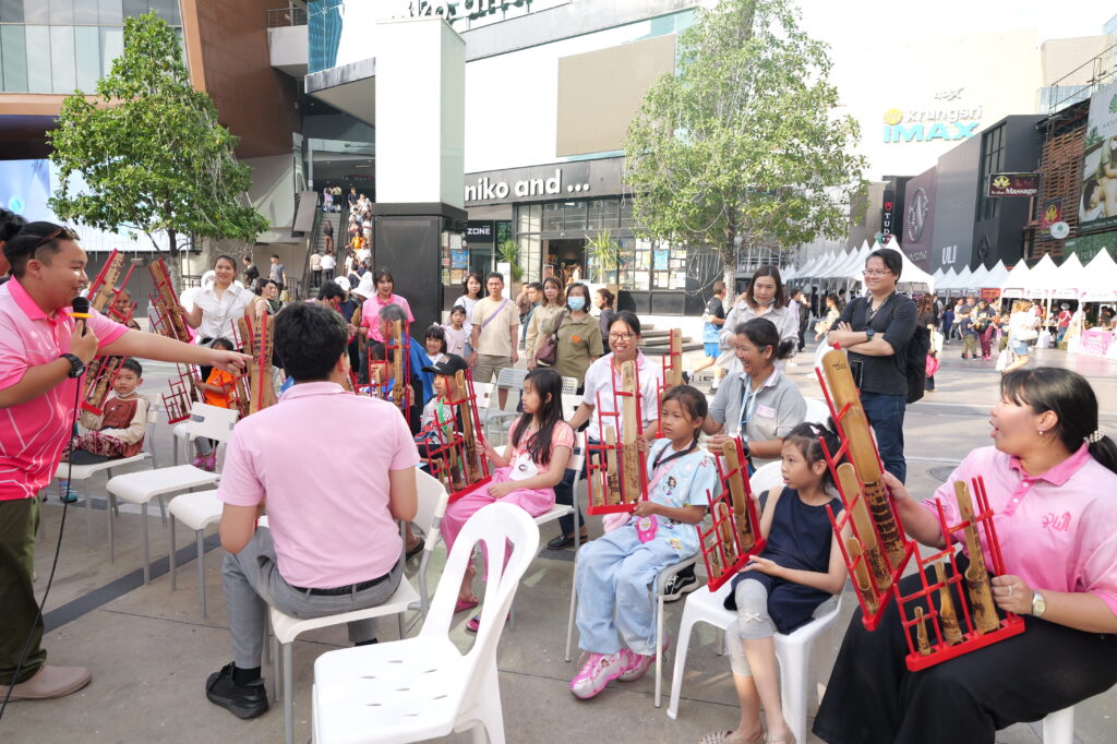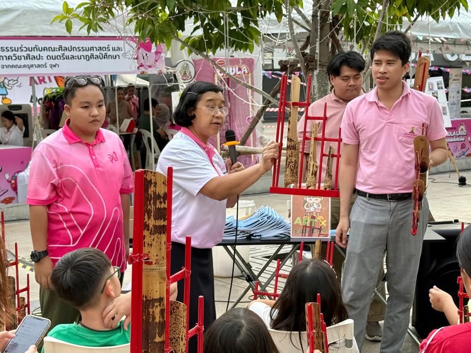 Co-organized by the Office of Art and Culture, the Faculty of Fine and Applied Arts, and the Faculty of Education, this event offered a “Multisensory Art Experience” to enrich children’s imagination through interactive arts in all dimensions. The program included a concert by the CU Chamber Ensemble and a live art performance by artist Kraiphon Kittisirathorn, who painted flowers inspired by music. The event took place at Siam Square area as part of Chulalongkorn University’s large-scale event of diverse activities from various faculties and departments across the university.