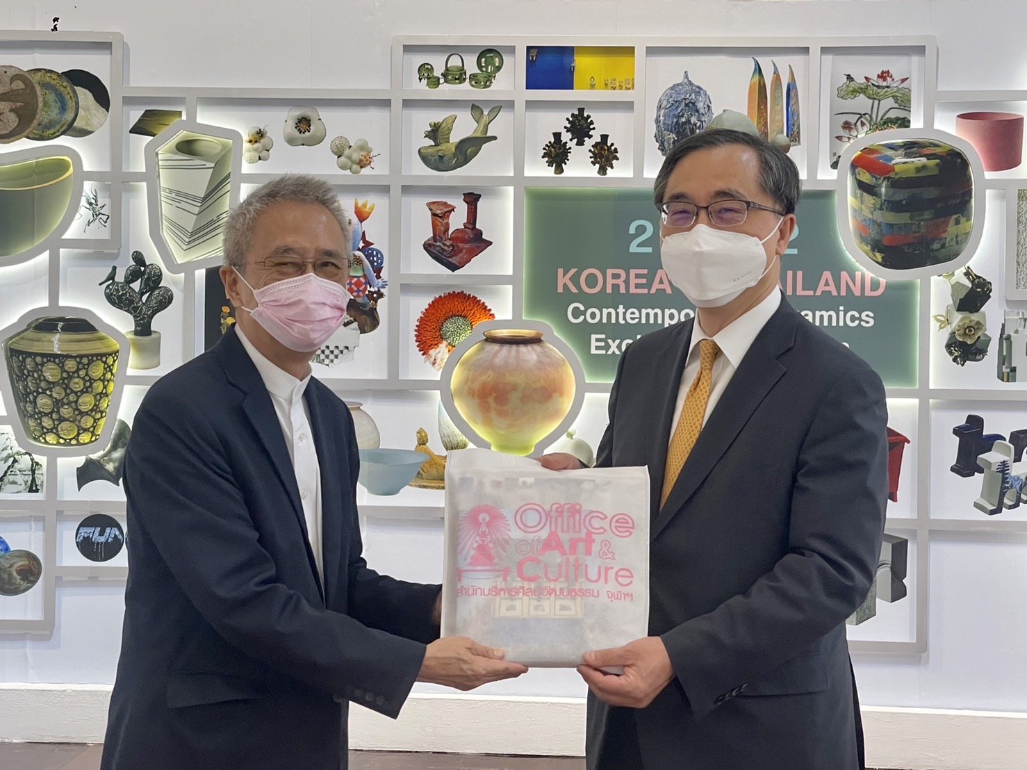 นิทรรศการ “2022 Korea – Thailand Contemporary Ceramics Exchange Exhibition” จัดขึ้นเพื่อเป็นการสนับสนุน ส่งเสริมกิจกรรมด้านศิลปะในระดับนานาชาติ โดยความร่วมมือระหว่างสำนักบริหารศิลปวัฒนธรรม จุฬาลงกรณ์มหาวิทยาลัย ภาควิชาการออกแบบอุตสาหกรรม คณะสถาปัตยกรรมศาสตร์ จุฬาลงกรณ์มหาวิทยาลัย, Ceramic Design at Namseoul University, Korea และสมาคมศิลปะเครื่องปั้นดินเผาเกาหลี (The Korea Society of Ceramic Art-KSCA) เพื่อแสดงศักยภาพด้านงานหัตถศิลป์ และสร้างเครือข่ายความสัมพันธ์ที่ดีระหว่างคณาจารย์และศิลปินด้านงานหัตถศิลป์ของประเทศไทยและประเทศเกาหลีที่มีชื่อเสียง จำนวน 85 ท่าน ซึ่งประกอบด้วยผลงานจากศิลปินเครื่องปั้นดินเผาเกาหลีที่มีชื่อเสียงและเป็นสมาชิกของสมาคมฯ จำนวน 60 ท่าน ร่วมกับศิลปินเครื่องปั้นดินเผาร่วมสมัยจากประเทศไทย จำนวน 25 ท่าน โดยการนำผลงานมาจัดแสดงนิทรรศการเพื่อแบ่งปันเทคนิคประสบการณ์ในการสร้างสรรค์ผลงานร่วมกัน และเสริมสร้างความก้าวไกลด้านความรู้ด้วยการเรียนรู้จากประสบการณ์จากศิลปินของทั้งสองประเทศ